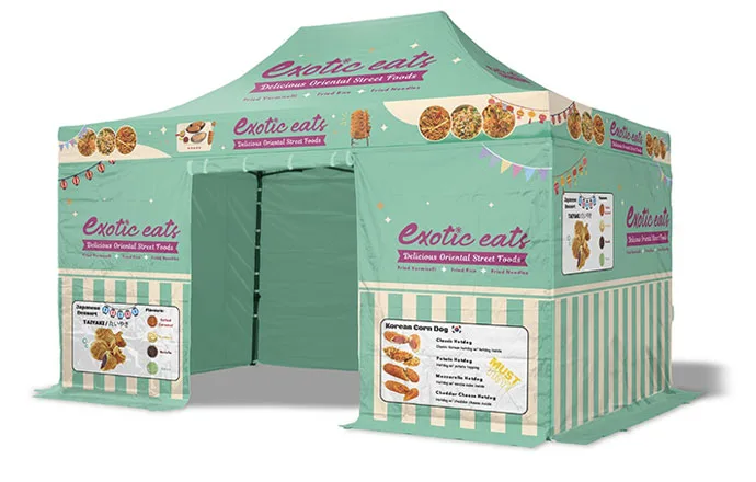 A well designed printed pop up gazebo can raise a food business to an iconic level and become the talking point among locals. This in turn will draw more business to your stall while raising your status in the local area.