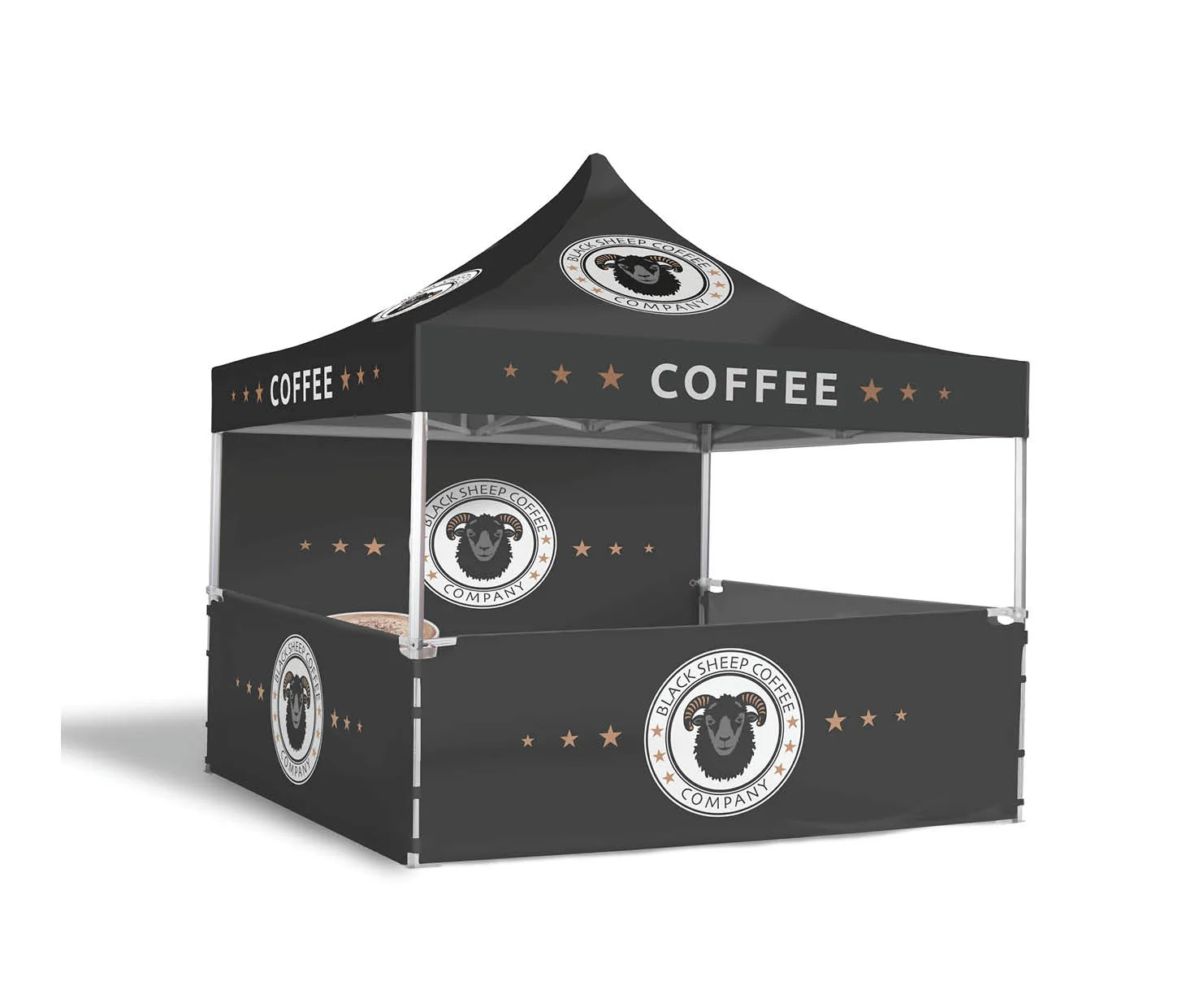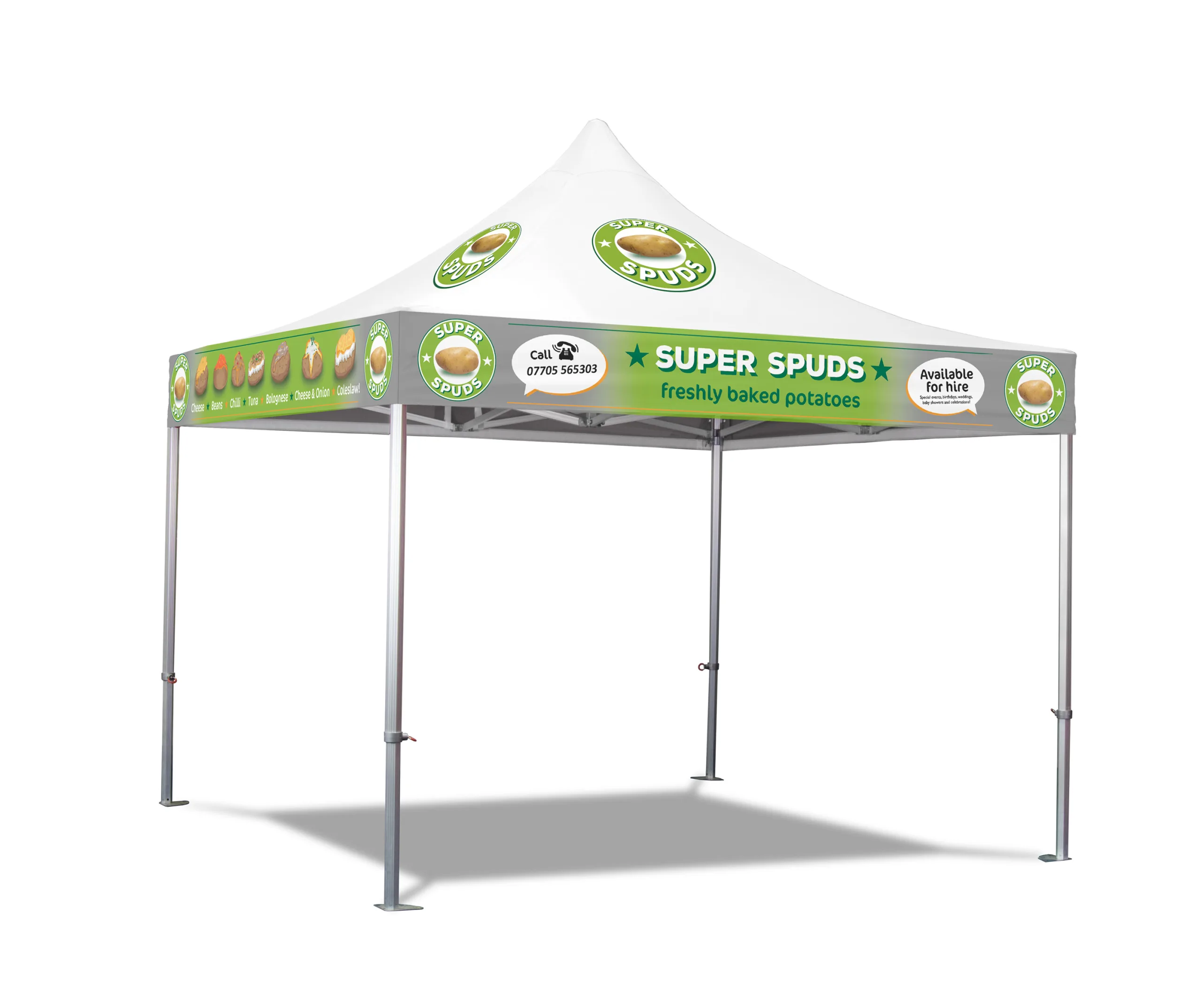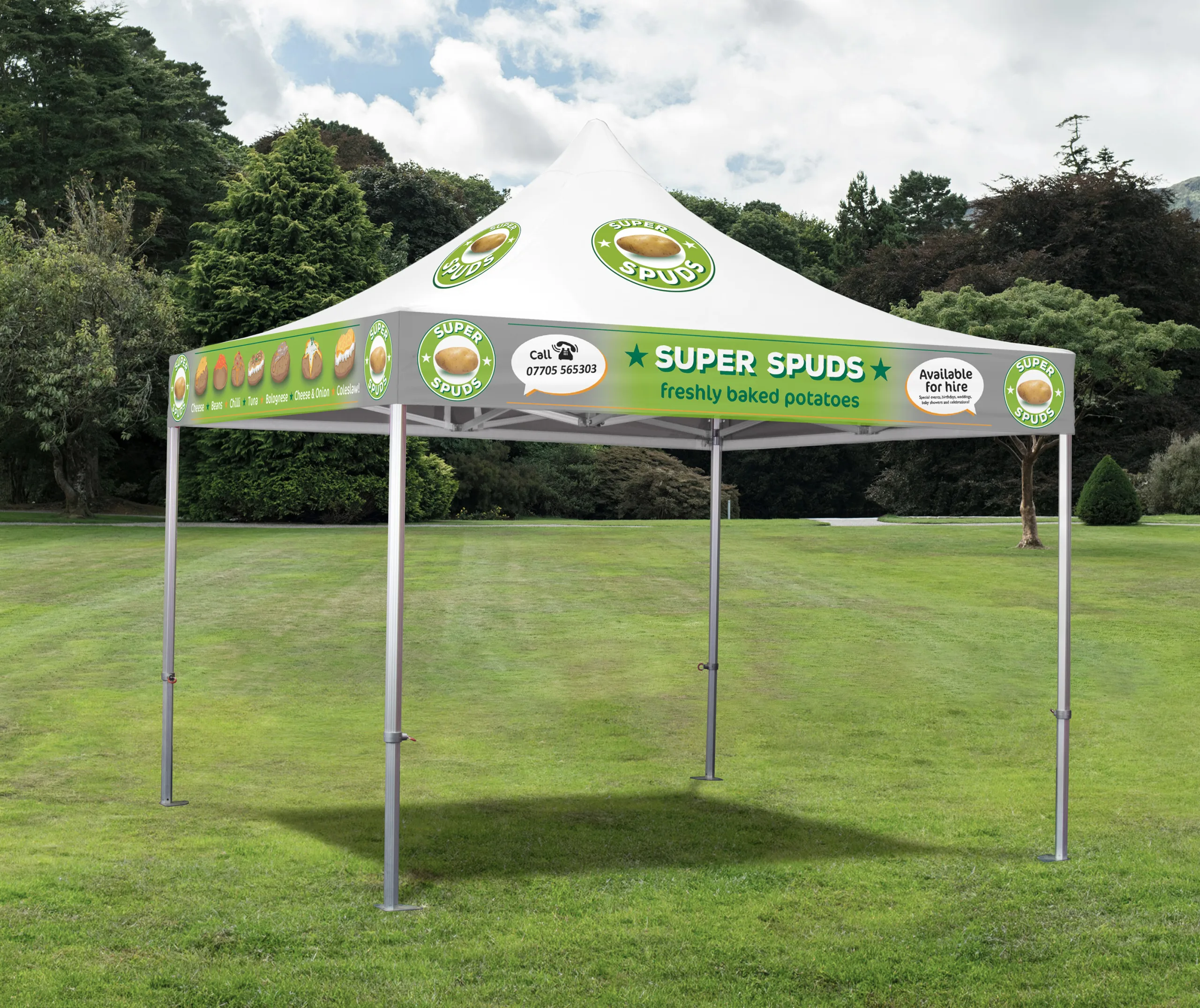 Each of our printed gazebo package options have been thoughtfully designed to work seamlessly with any of the frame styles we offer, whether you choose a durable steel frame or the reinforced aluminium alternative. This flexibility ensures you can pair your preferred level of structural support with striking, high-quality printed graphics to create a complete setup that meets both your functional needs and branding goals.