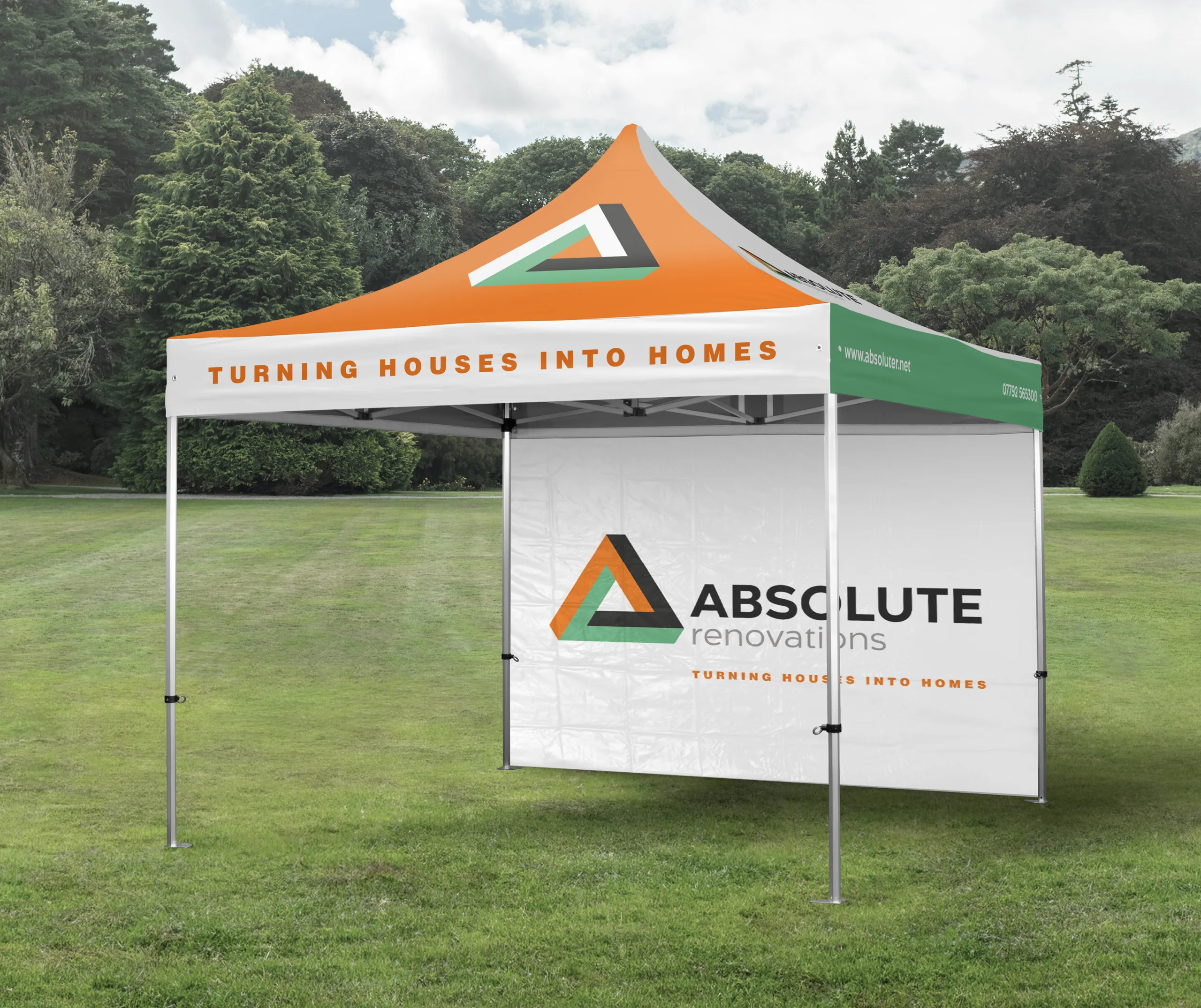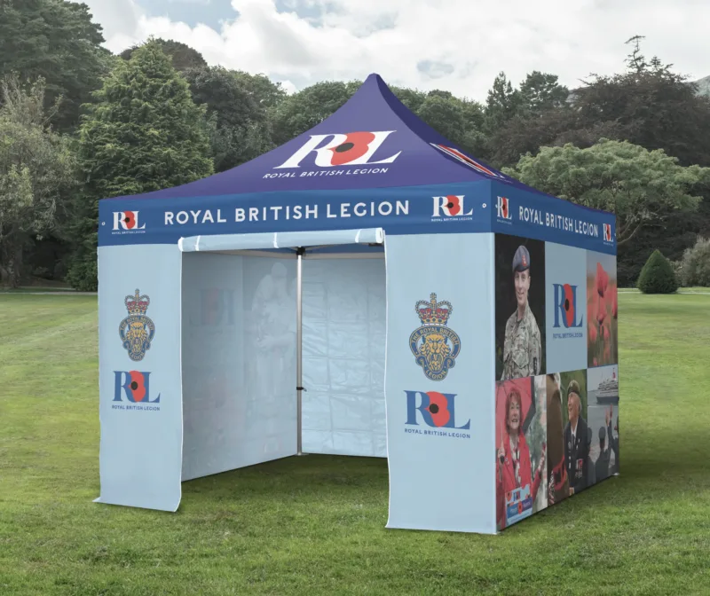 All print work is produced using high-quality dye sublimation, ensuring rich, vibrant colours that are long-lasting and fade resistant. The graphics are applied to a high grade polyester fabric, known for its durability and excellent performance in a variety of weather conditions. This means your gazebo will not only look striking, but it will also stand up to the demands of regular outdoor use.