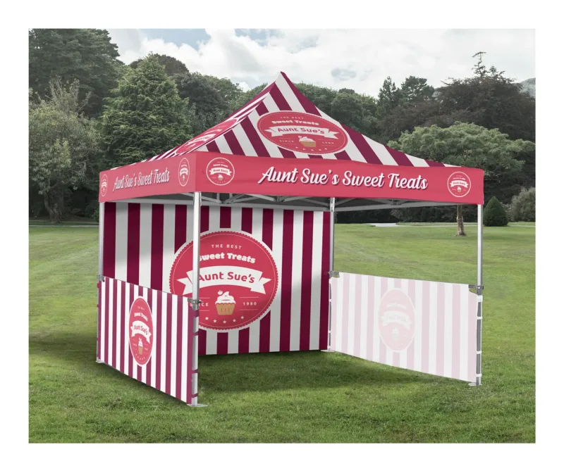 Our 3m x 3m printed pop-up gazebo packages are the ideal solution for creating a strong, professional presence at any event. Each package includes a fully printed roof cover, with additional options such as fully printed sidewalls or half sidewalls to suit your specific setup and branding needs.