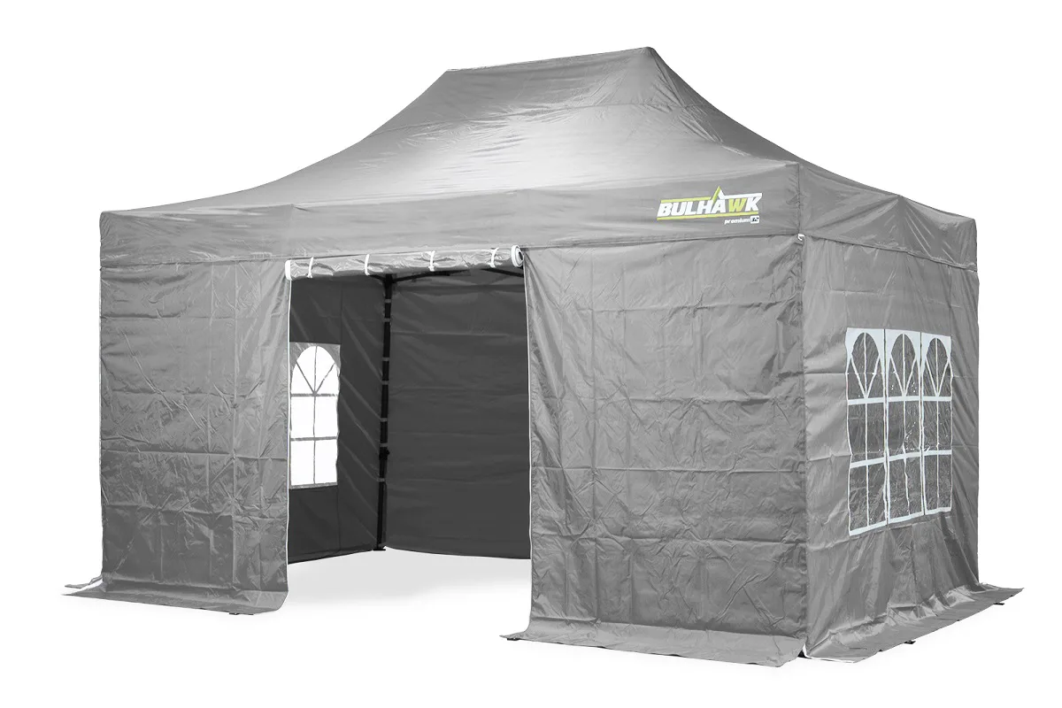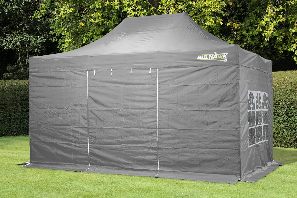 Bulhawk® 2.5m x 2.5m Quantum 30 Pop Up Gazebo including sidewalls – Two tone grey as roof cover and sidewalls are a different shade