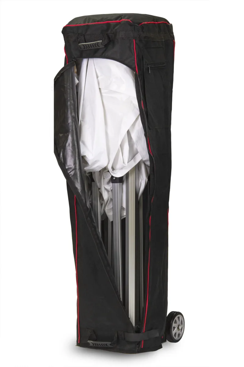 This wheeled bag is specifically designed for holding a 3×3 50mm Aluminium gazebo with plated feet. It is not suitable for smaller style gazebos.
