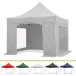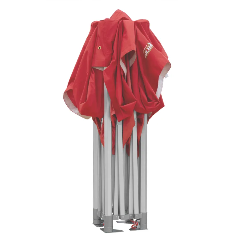 The deluxe 50 is our top end product range which is of industrial grade and has been engineered to suit commercial users looking for a structure that will perform in the most demanding of conditions. Made using 6061/T6 aluminium with a 50mm x 50mm hexagonal leg tube profile (Note that this is 60mm x 60mm if measuring from corner to corner) and has a 2mm gauge. The deluxe 50 is the most heavy duty gazebo model on the European market and designed for every day use. This product is a common feature of any town square as it is used by a variety of outdoor business’s across the country. This model is the go-to option for a host of business types including market traders and catering companies. It is also a favourite for exhibitions and events, weddings and sports purposes such as motor cross. The cross strut bars are finished with a central interior reinforcement providing maximum support.
