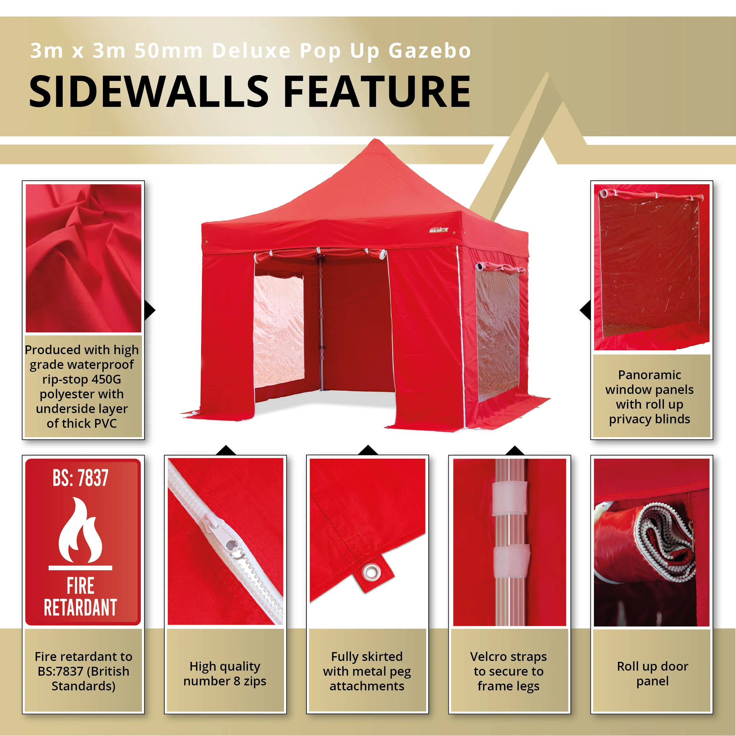 Bulhawk® 3m x 3m Deluxe 50mm Heavy Duty Pop Up Gazebo