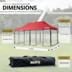 In terms of size, the 3×6 is a large shelter and provides approximately 18 sqm of coverage. This size is a favourite for big gatherings or larger events and functions. The framework on the premium 32 model is extremely well made and finished with a black powder coating making it built to last.