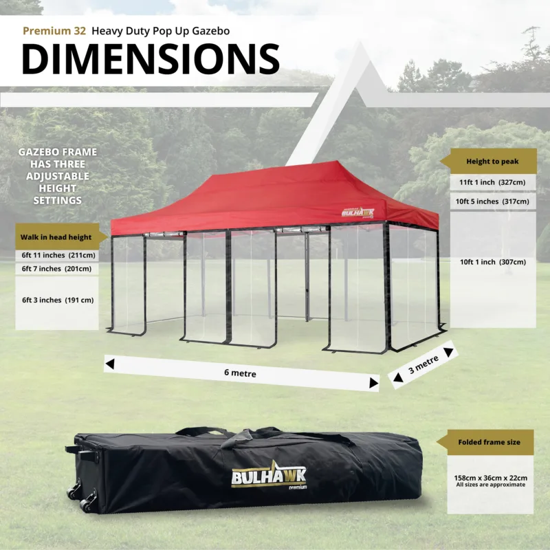 Bulhawk® 3m x 6m Premium 32 Heavy Duty Pop Up Gazebo with Clear Sides