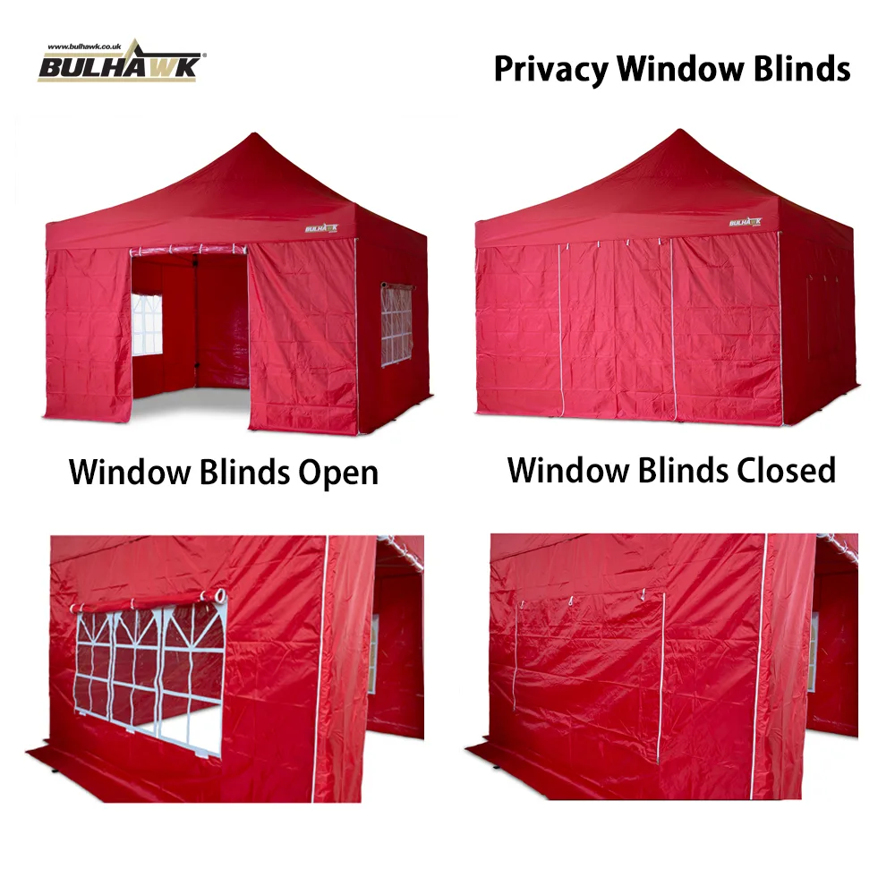 If your looking for that next level of strength, rigidity and overall quality then the Premium Hex 40 is one well worth considering. Our premium 40 hex model is the strongest steel based pop up gazebo on the European market. This upgraded steel frame is durable and robust and boasts an impressive 40mm hexagonal leg profile and finished in a white hammerite powder coating. This model includes zipper connecting sidewalls making assembly easier and giving a neater, more compact finish. The windows also come with zipped privacy blinds.