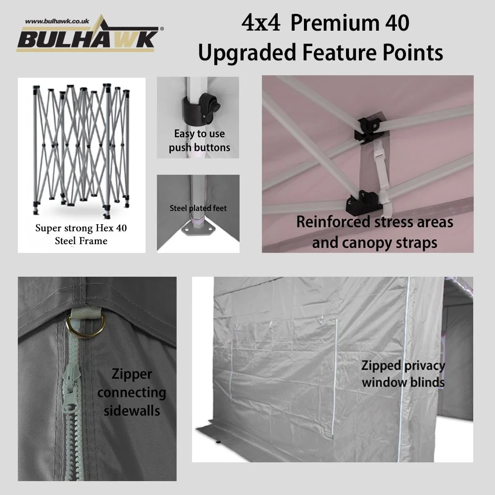 Bulhawk® 4m x 4m Premium Hex 40 Steel Heavy Duty Pop Up Gazebo